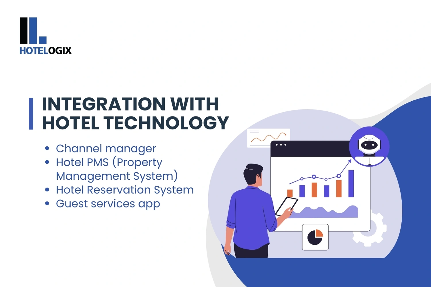- Hotelogix integrates with the channel manager, ensuring guests always see the latest availability and correct prices in the tour.