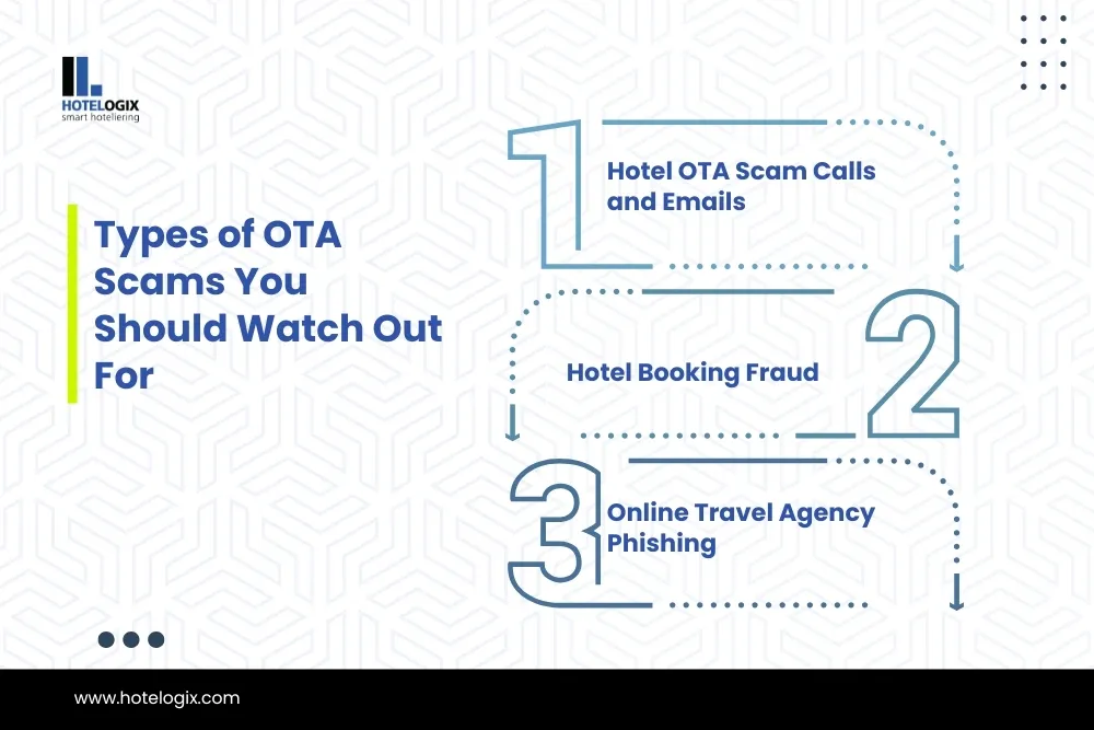 - Online Travel Agency Phishing Phishing scams are fake emails that look like they come from OTAs. These emails may ask your staff to click on dangerous links or provide login details. If your staff follows these instructions, scammers can gain access to your hotel’s booking system and guest data. In 2022, the Federal Trade Commission (FTC) recorded a significant rise in phishing attacks targeting the hospitality industry, with 60% of the attacks being OTA-related.